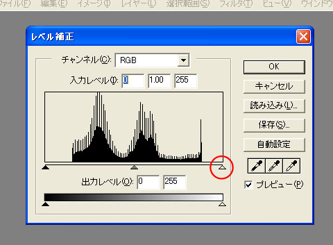 イメージ(I)>色調補正(A)>レベル補正(L)>